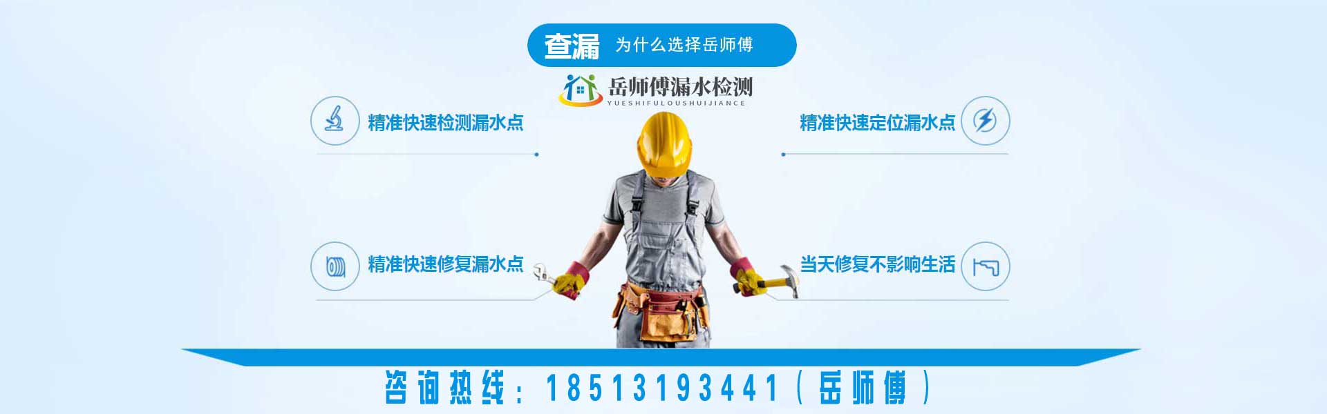 北京岳師傅漏水檢測維修(北京京誠快修漏水檢測有限公司)專業(yè)從事漏水檢測維修服務(wù),包括衛(wèi)生間漏水檢測,廚房漏水檢測,房屋漏水檢測,地暖漏水檢測,管道漏水檢測,家庭暗管滲水查漏,室內(nèi)外漏水檢測,暗管漏水檢測等,針對各種漏水檢測維修情況提供最佳方案及服務(wù)。引進(jìn)進(jìn)口設(shè)備儀器,配備相關(guān)儀,巡管儀,熱像儀,測漏儀,氣體示蹤儀專業(yè)設(shè)備查找室外暗埋熱力管網(wǎng)漏水,自來水管網(wǎng)漏水消防管網(wǎng)漏水,探測深度可達(dá)地下5米深的500型管道漏水點(diǎn)精準(zhǔn)定位。室內(nèi)漏水精準(zhǔn)定位漏水點(diǎn)、零誤差維修墻角起堿、掉皮。免砸磚維修防水,水管打壓。以技術(shù)領(lǐng)先為基、誠信服務(wù)為準(zhǔn)、質(zhì)量保證為則,建立一批技過硬的技術(shù)人員經(jīng)驗(yàn)豐富服務(wù)領(lǐng)先的工程團(tuán)隊(duì),...